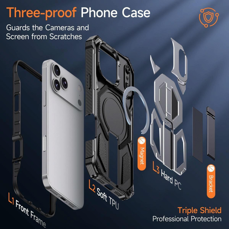 Husa iPhone 17 Pro Max, Premium Antisoc, Stand Magnetic, Grey
