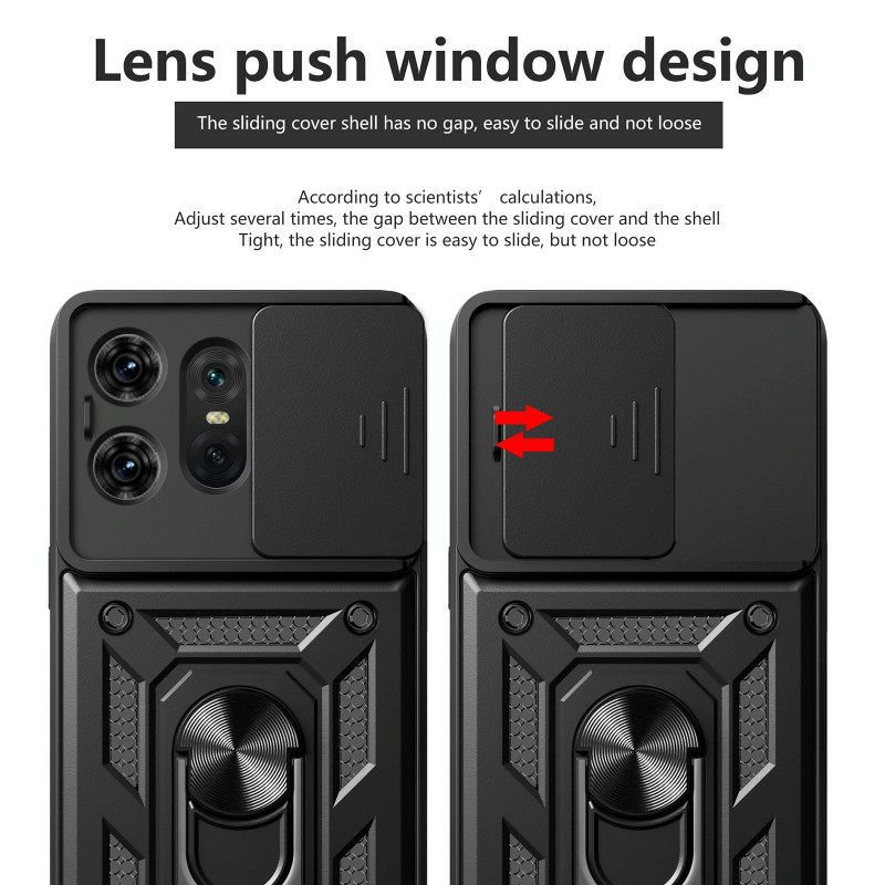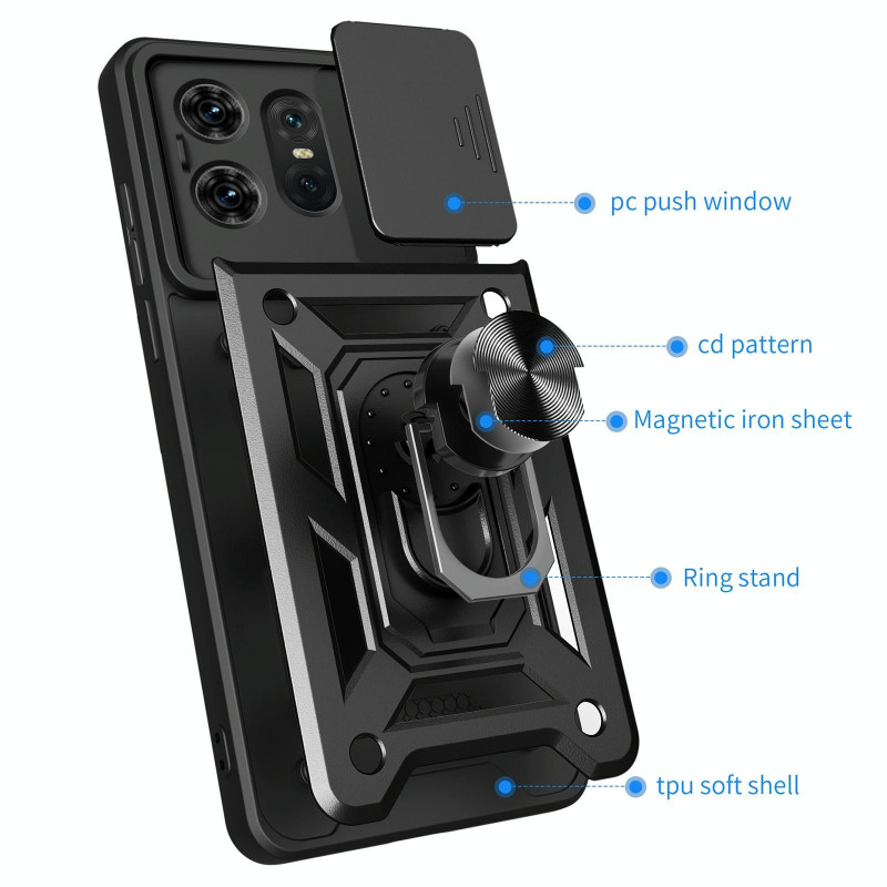 Husa Motorola Edge 50 Pro Antisoc, Protectie camera, Inel, Black