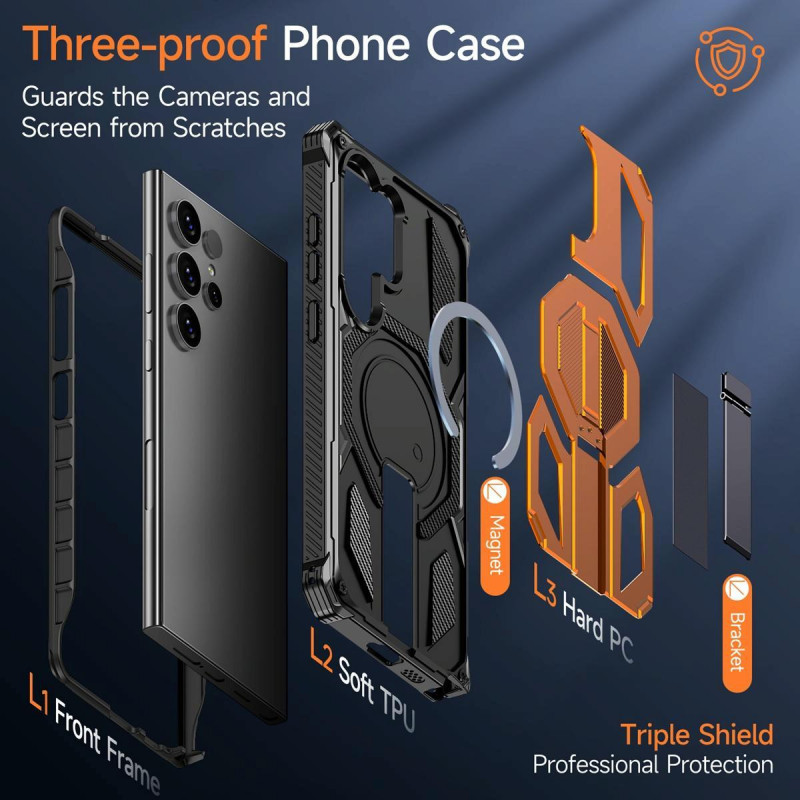 Husa Samsung Galaxy S24 Ultra, Premium Antisoc, Stand Magnetic, Orange
