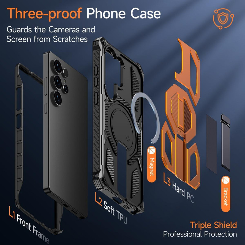 Husa Samsung Galaxy S25 Ultra, Premium Antisoc, Stand Magnetic, Orange